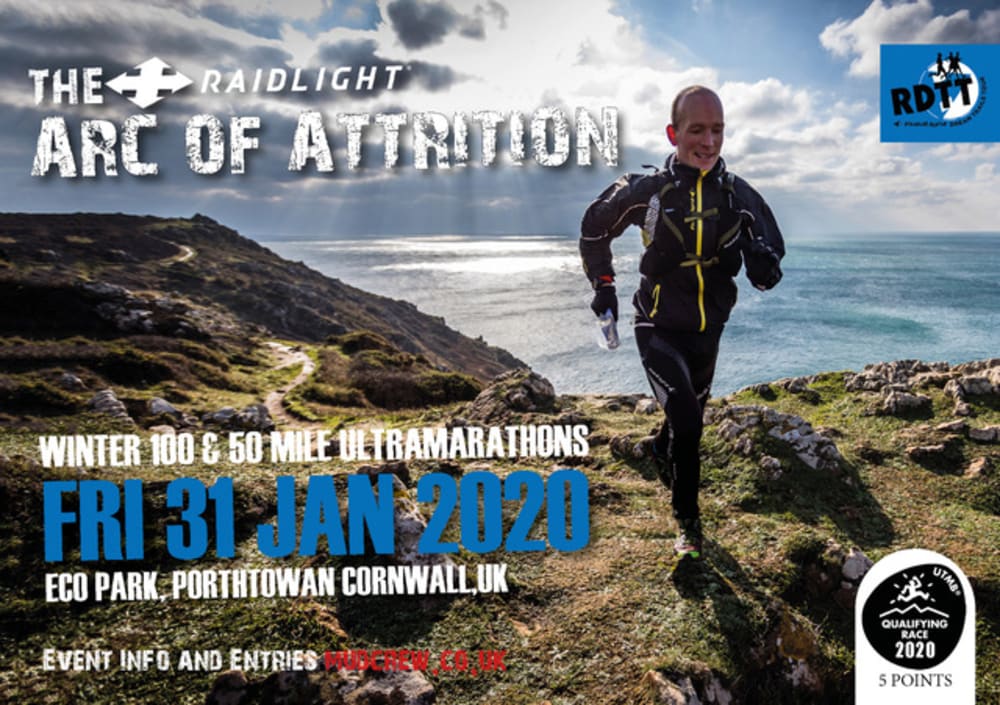 • The Arc is a point-to-point extreme coastal race from Coverack to Porthtowan taking in 100miles of stunning and dramatic Cornish Coastpath with competitors running in challenging winter conditions. Runners will complete an Arc around the entire south west foot of Cornwall. The race has a strict 36 hour cut-off with additional checkpoint and safety cut-offs on route. With checkpoints approximately 20 miles apart, competitors will need the ability to be self-sufficient for long periods of time.